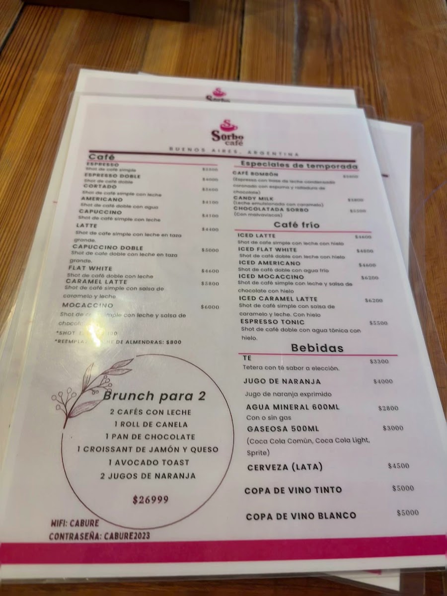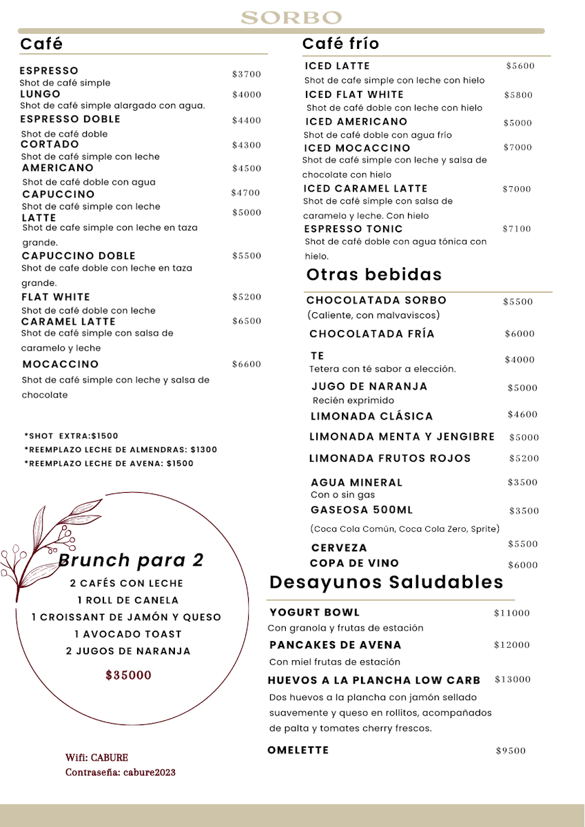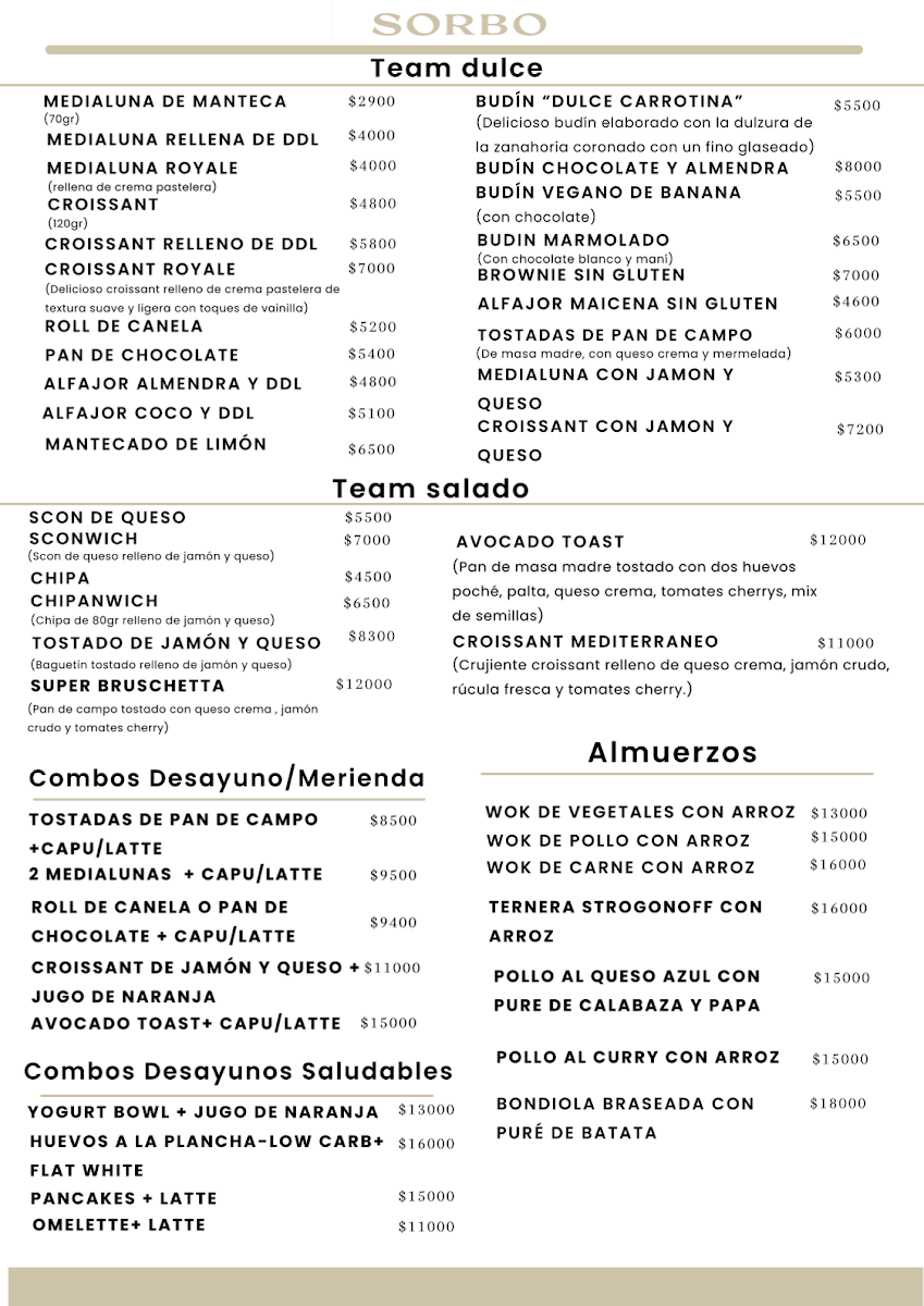 Sorbo Café BA Menu
